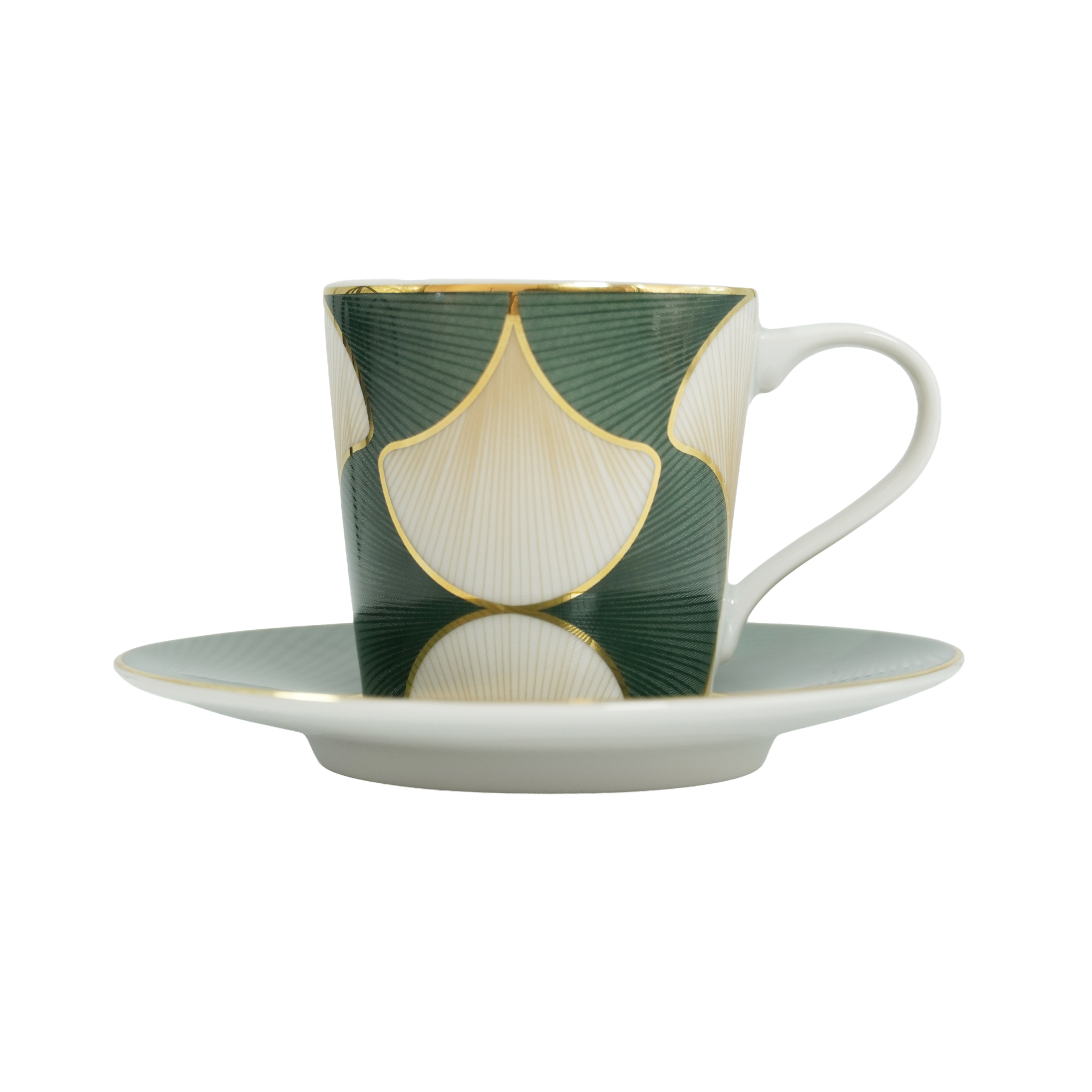 Verleihen Sie Ihrem Espresso einen Hauch von Eleganz – mit unserer stilvollen Espressotasse und dem passenden Unterteller aus der exklusiven „Ginkgo“-Kollektion. Feine grüne Blätter, veredelt mit zarten goldenen Linien und inspiriert vom Ginkgo-Baum, schmücken dieses edle Set. Das harmonische Zusammenspiel aus Naturmotiv und modernem Design macht jede Espressopause zu einem besonderen Genussmoment – perfekt für stilvolle Augenblicke zu Hause.