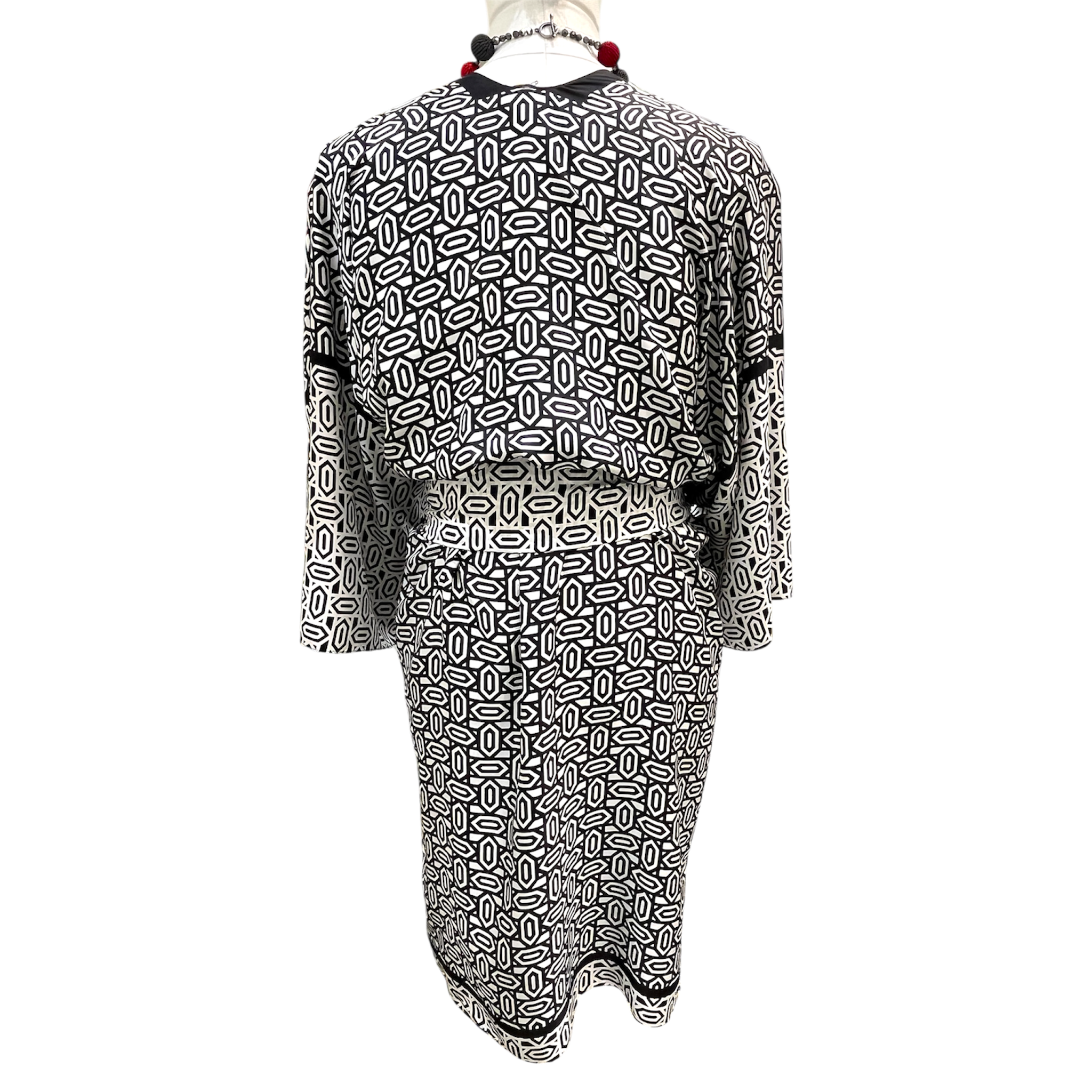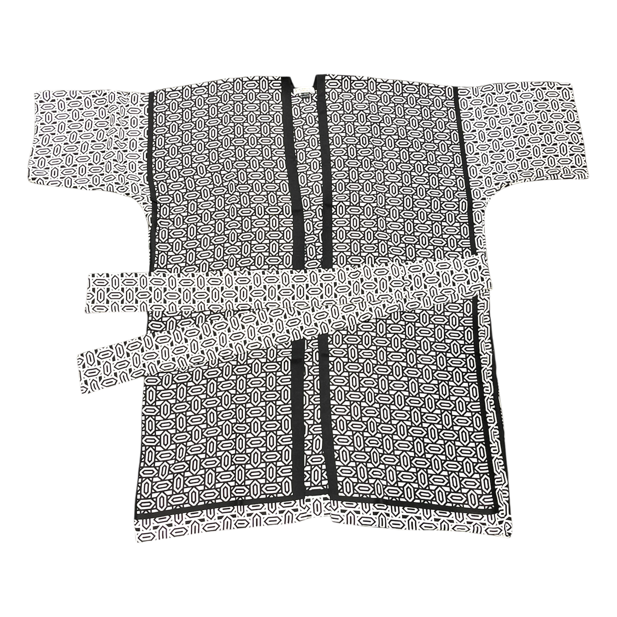 Kimono mit Diamantenmuster in Schwarz/Weiß – Ein zeitlos elegantes Unikat: Dieser Kimono besticht durch sein markantes Diamantenmuster in klassischem Schwarz-Weiß und wird für die Österreichischen Werkstätten mit größter Sorgfalt gefertigt.