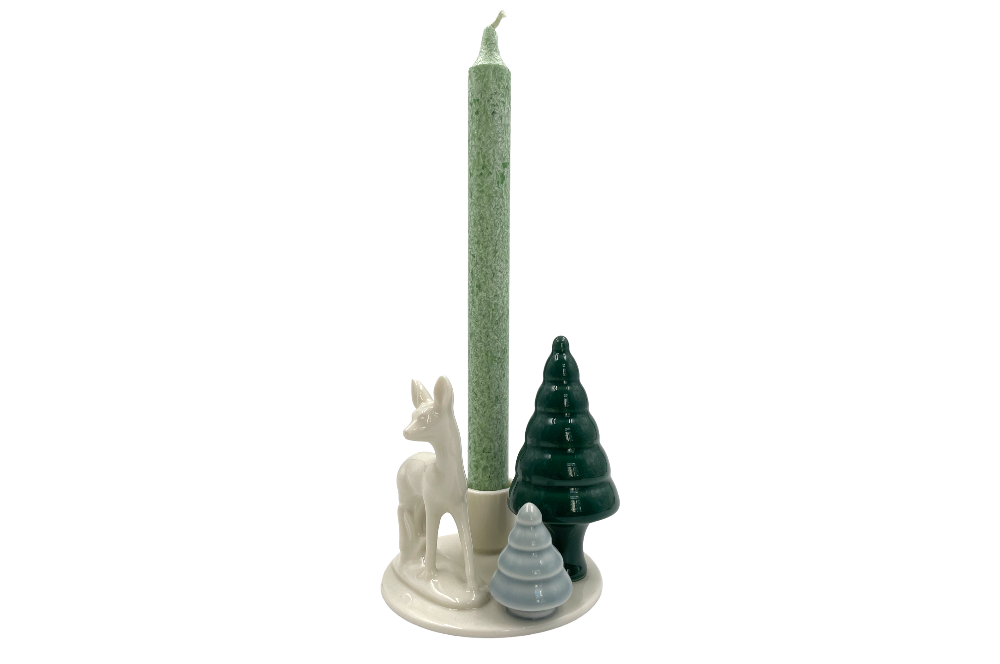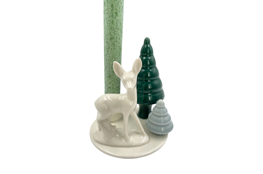 Bambi inszeniert eine maische und persönliche Tischdekoration. Verträumter Kerzenhalter mit Bambi und Tannenbäumen. Die Wintergeschichten bringen ein angenehmes Licht in den langen, gemütlichen Wintertagen.