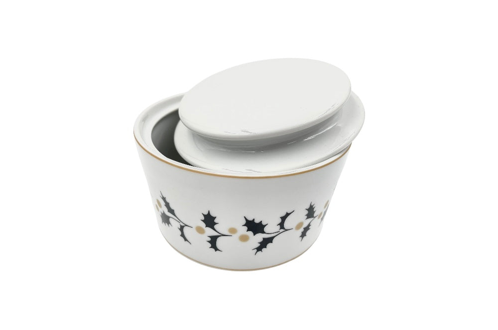 Diese Zuckerdose ist Teil unseres ersten ÖW Exklusiv-Porzellanservices "HOLLY". Das ornamentale Muster, welches sich auf allen Teilen dieser Kollektion wiederfindet ist angelehnt an historische Entwürfe aus der Zeit des Art déco. In der zeitlosen, immer edel anmutenden Farbkombination Schwarz-Weiß-Gold verwandelt sich jeder Tisch in eine festliche gedeckte Tafel. Damit Sie auch lange Freude an diesem hochwertigen Produkt haben, empfehlen wir aufgrund der Goldauflage Handwäsche sowie keine Mikrowellen-Nutzung.
